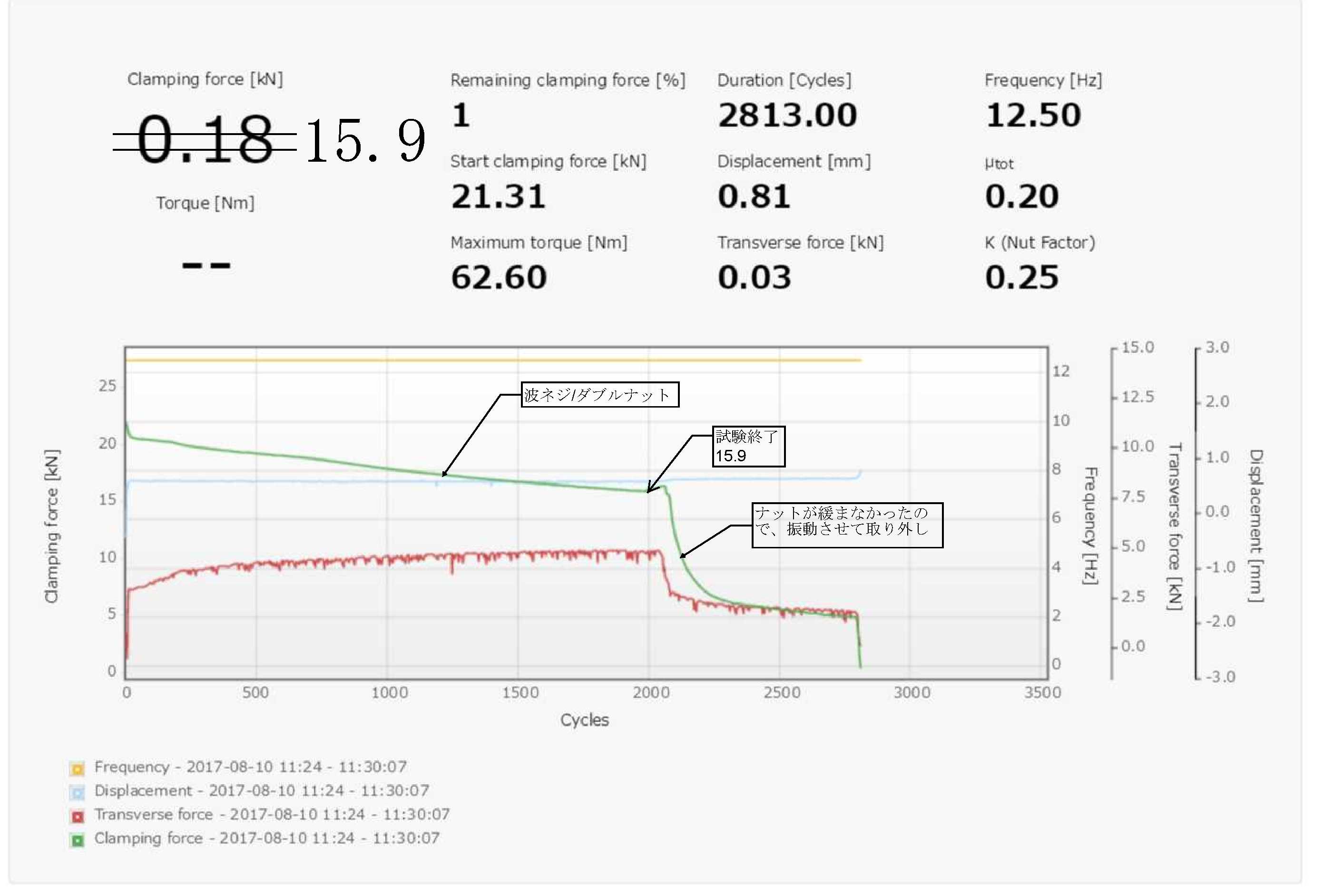 でドイツ規格のDIN25201-4(新)、DIN65151(旧)の緩み止め試験を